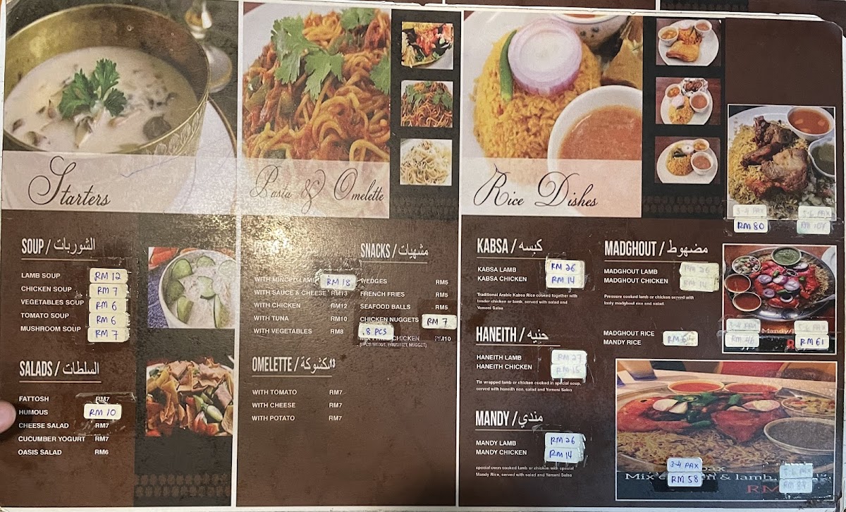 Oasis Arabic Yemeni Cuisine, nestled in Taiping, Malaysia, offers an authentic taste of Yemen that captivates the senses. This Yemeni restaurant strikes a perfect balance between a minimalist ambiance and comfort, making it a delightful spot for family gatherings and casual dining. Customers rave about the tender, juicy lamb and flavorful kebabs that cater beautifully to local palates, showcasing the rich spices and aromas characteristic of Yemeni cuisine.